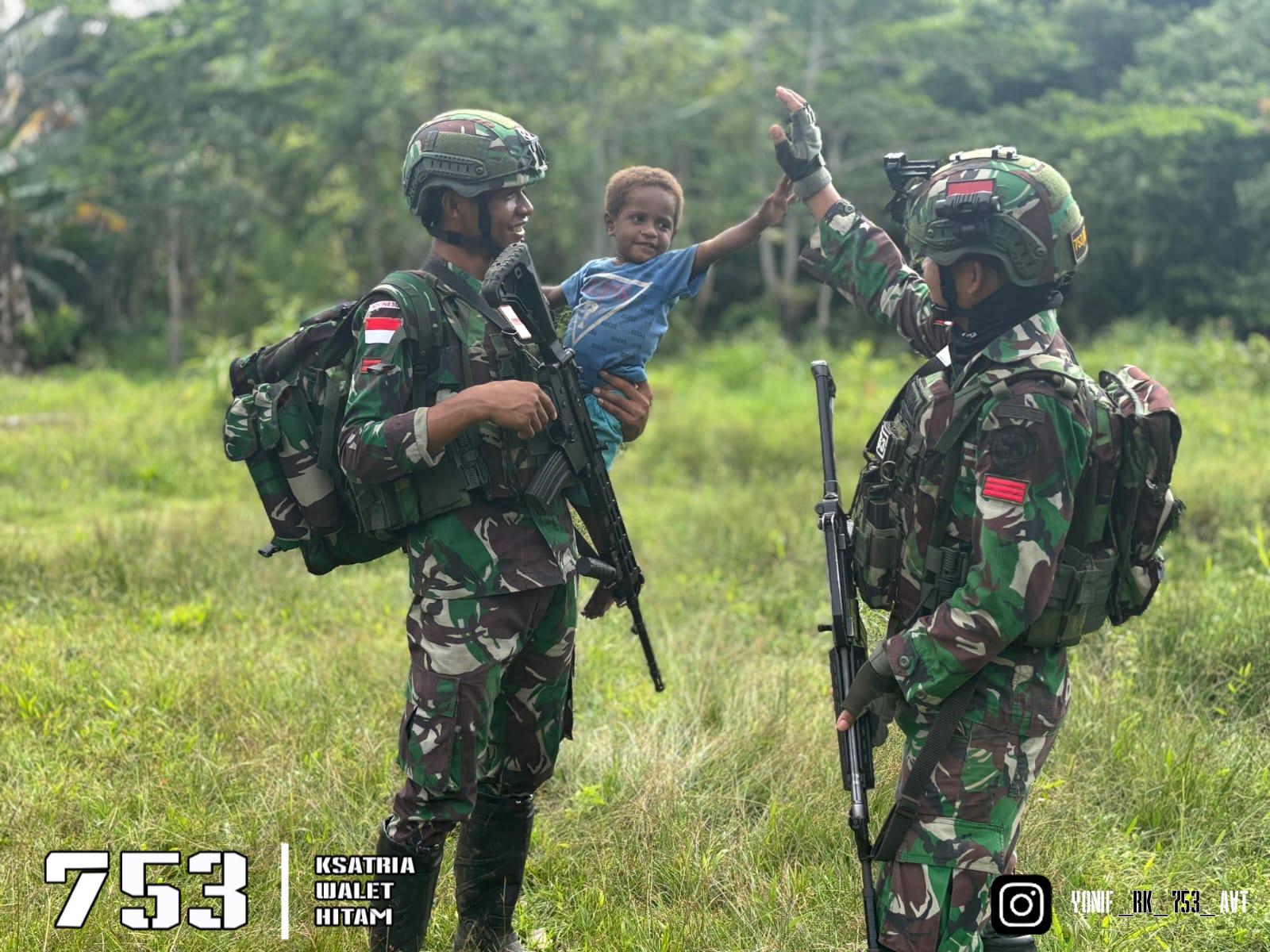 Tumbuhkan Semangat Belajar, Satgas Yonif 753/AVT Pos Melky Bagikan Alat Tulis kepada Anak-anak